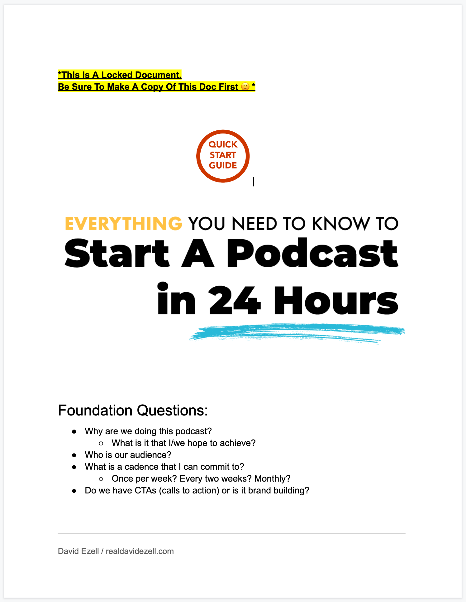 Starting a podcast can feel overwhelming but with this guide, you’ll have everything you need to get started. You’ll also get the Quick Start Guide that has things like: