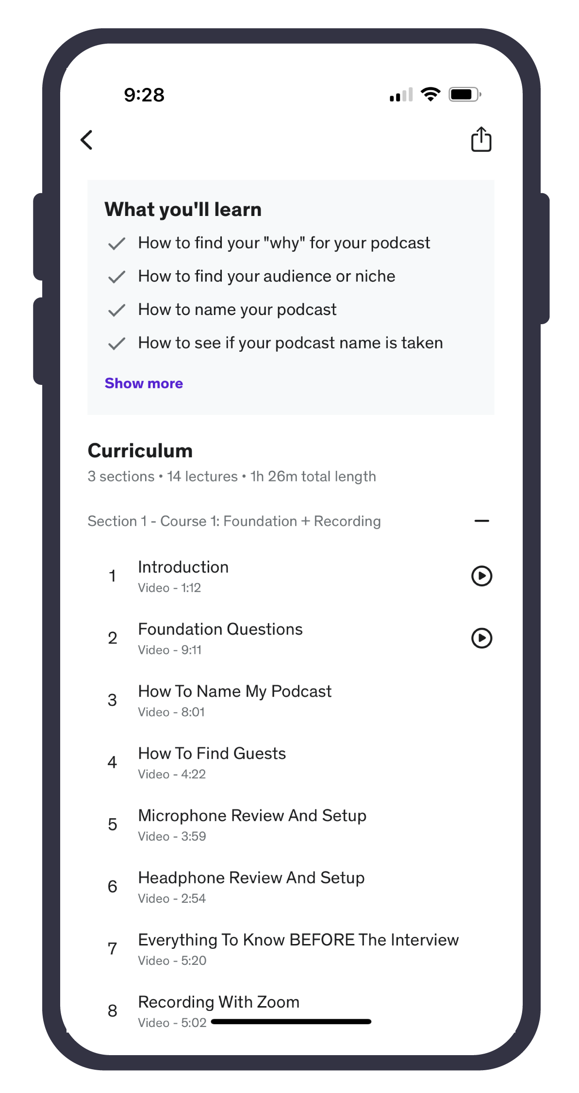 “This course was super helpful! We’re starting a baseball podcast around the quirks of the game, and David’s comprehensive journey of each step has already helped us fine tune our script and delivery. Also really appreciate that each step is short so we can digest the learning easier. As we interview current and former players, we’ve learned to be a bit more cohesive, as well as how to edit the final cut to be more enjoyable to listeners. Thanks again David!”